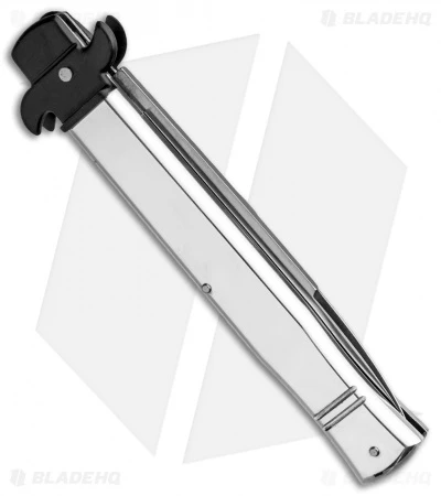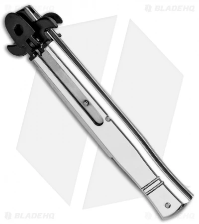 This 9″ Italian Stiletto from AKC comes in the Leverletto style with a polished silver aluminum handle and a flat grind blade. AKC specializes in collectible Italian stilettos made with traditional knife-making techniques. This Bill DeShiv’s designed Leverletto model has an aluminum handle with a stainless steel bolster. Satin finished pins add a classic finishing touch to the design. The blade comes in a drop point style with a plain edge and a satin finish. Add classic Italian style to your collection with the AKC 9″ Leverletto stiletto.