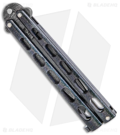 Bear & Son butterfly knife features a stainless steel blade with a tough epoxy coating over its durable steel handles. The handles feature a skeletonized design to reduce weight.
