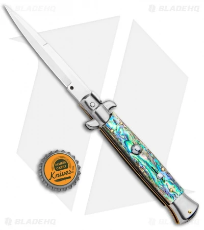 This 9″ Italian Stiletto from Frank B Italy offers classic stiletto style with an abalone handle and a satin finished bayonet blade. Frank B makes a variety of Italian stilettos featuring traditional designs at an affordable price. Experience the affordable Italian quality of these authentic stilettos from Frank B Italy.