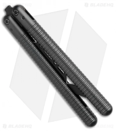 This SAHARA balisong trainer features a black blade and rhino gray handles.