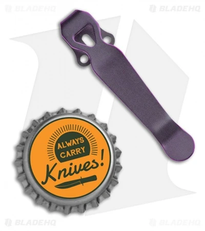This purple Ti pocket clip fits Benchmade and Emerson knives with the standard 3 hole pattern, like the 940 Obsborne. It is also compatible with several Pro-Tech and Zero Tolerance models. Lynch Northwest, run by Casey Lynch in Rockford WA, makes the perfect replacement pocket clip for a variety of knives. Made from 6Al4V titanium, the clip is a designed for deep-carry and adds a clean look to your knife.